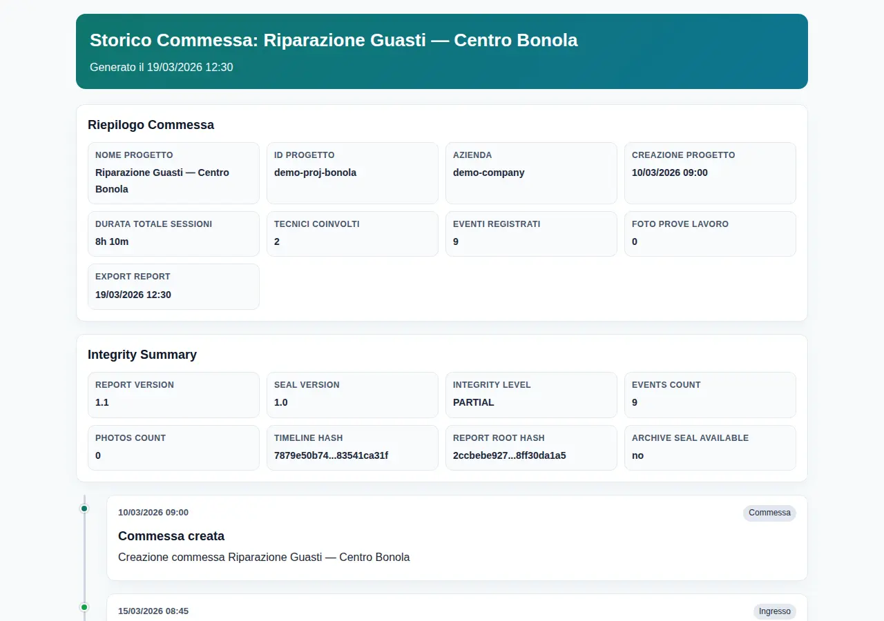 Non hai un report? Scarica questo esempio reale e prova subito il verificatore.